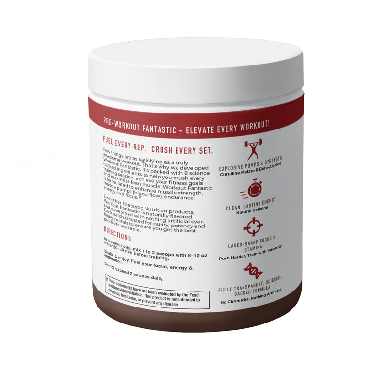 Workout Fantastic combines research supported ingredients formulated to increase energy and endurance, delay fatigue and enhance performance in the gym or wherever you workout.