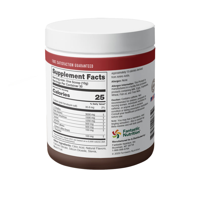 Mix 1 level scoop in 8 to 12 ozs of water and consume 30 to 40 minutes before training. It can be mixed with Creatine Fantastic.